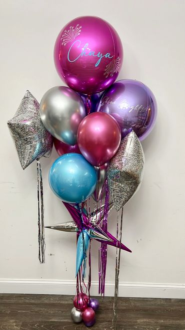 Our most versatile and portable helium bouquet is perfect for any VIP birthday party or to surprise your loved one. Personalize it to complement the color scheme or theme and include a customized message to make that special person in your life feel unique.